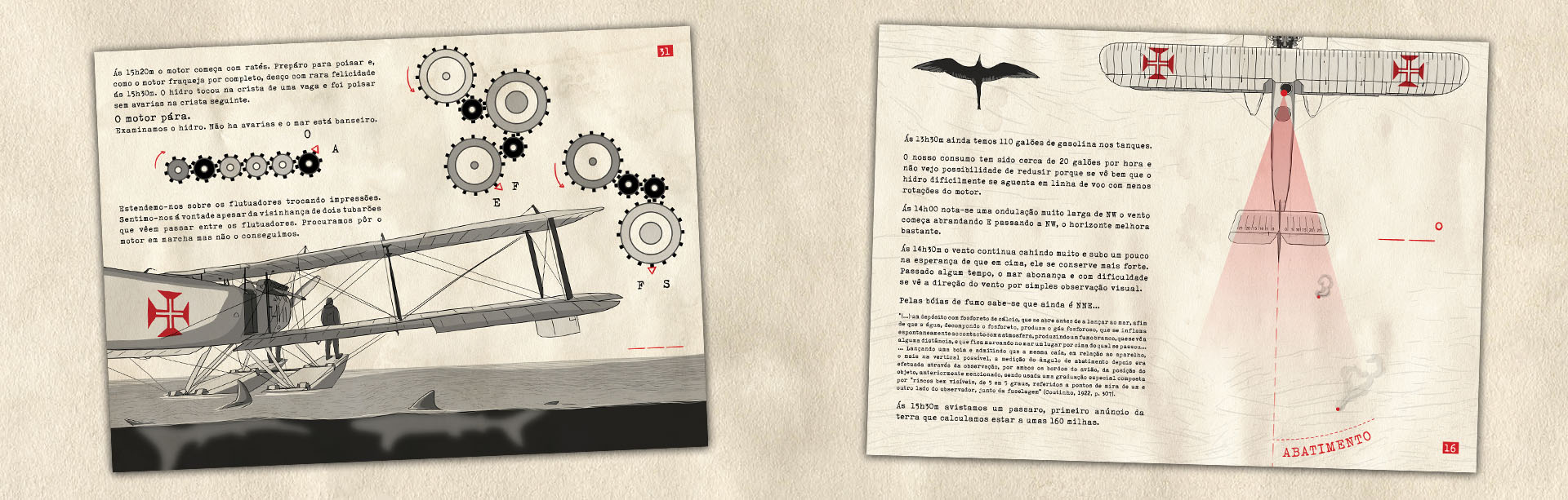 Envolto em ilustrações dos aviões, locais e mapas, este livro, pretende dar a conhecer as várias etapas